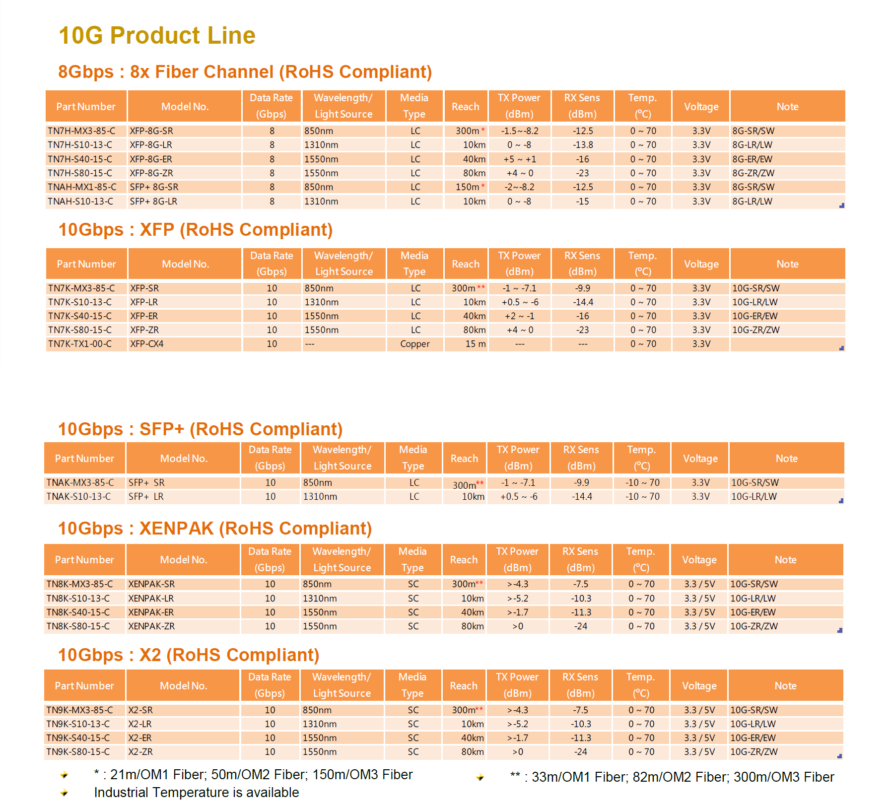 • 符合 IEEE 802.3ae 10BGBASE-SR、-LR、-ER、-ZR 以太网标准
