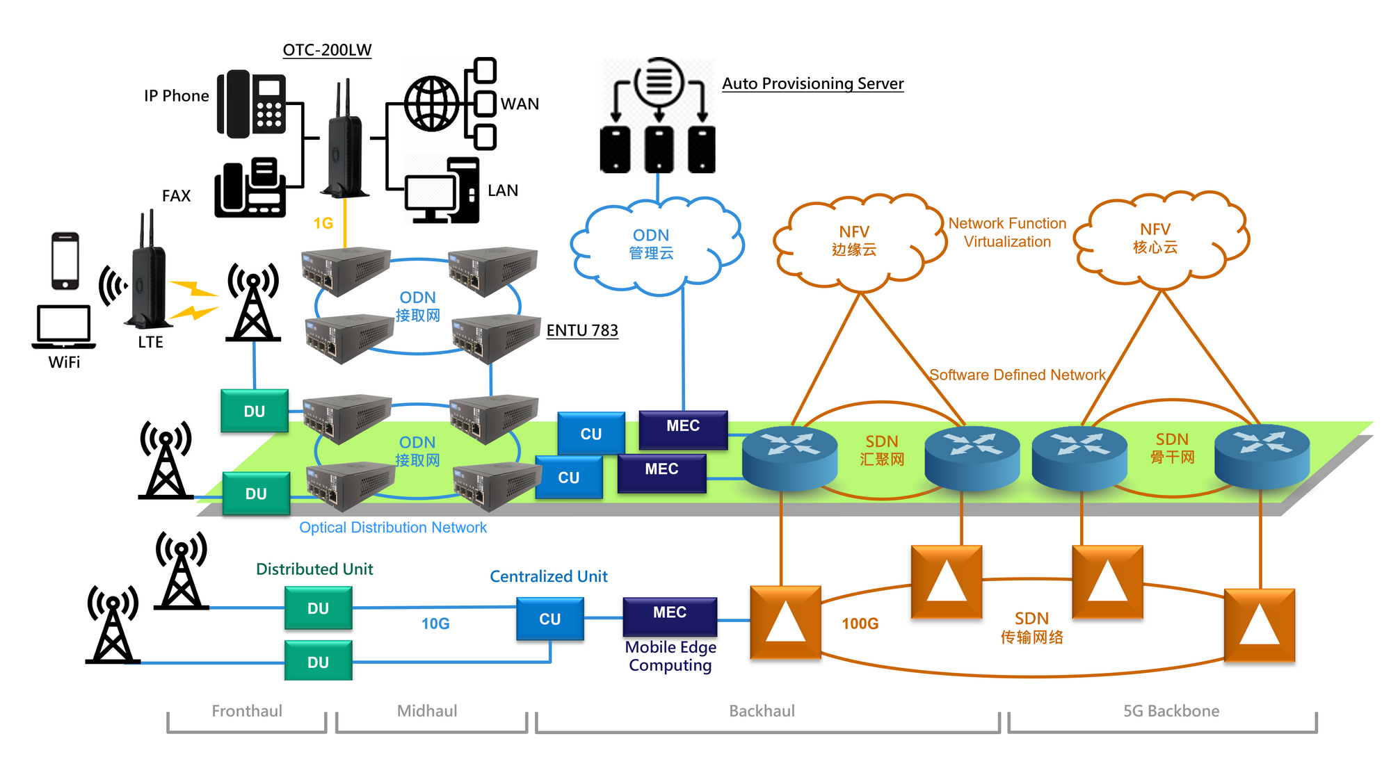 电信运营商成立 O-RAN 联盟,打破过去软硬体高度整合的封闭式系统,将整体架构区分成无线电单元 (Radio Unit,RU)、分布单元 (Distributed Unit,DU)、中央单元 (Central Unit,CU) 等分层硬体,与不同层之间的传输介面、控制等,透过开放架构达,强化网路建置之自主性、降低网路设备的投资金额、加速新功能的开发与导入、提升网路维运的弹性与效能。